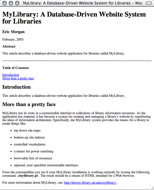 Demonstrating how Web pages can be programmatically created using XSLT allowing libraries to transform XML documents into other types of documents