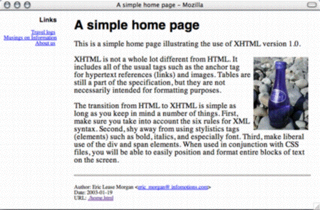 The structure of an XML document is a tree structure where there is one trunk and optionally many branches. The single trunk represents the root element of the XML document. Consider the following, overly simplified, HTML document, Figure 2.1: