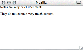 Each element is denoted by opening and closing brackets, the less than sign (<) and greater than sign (>), respectively. XML elements are rarely empty; they are usually used to provide some sort of meaning or context to some data, and consequently, XML elements usually surround data. Each of the elements is Figure 2.1 are opened and closed. For example, the title of the document is denoted with the <title> and </title> elements and the only paragraph of the document is denoted with <p> and </p> elements. An opened element does not contain the initial forward slash but closing elements do.